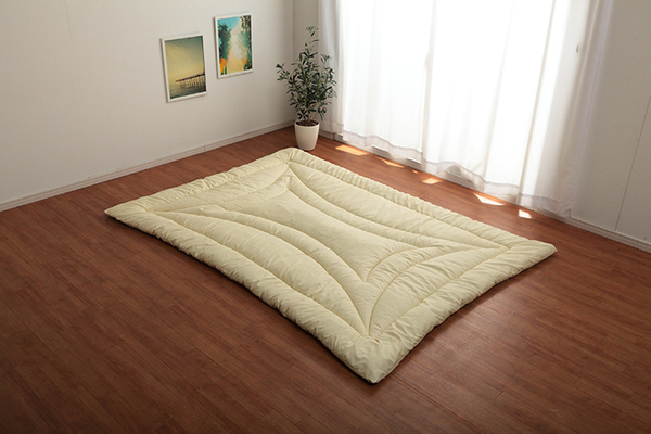 詰め物:中わた…ポリエステル100%、ダニがいなくなるシート70g/平方メートル(不織布…ポリエステル70%/綿30%)