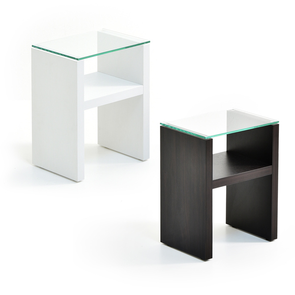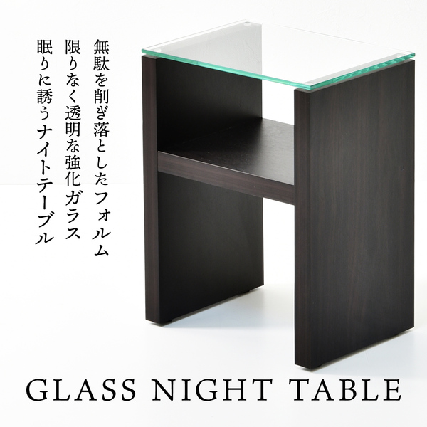 シンプルなガラスサイドテーブルです。シンプルなデザインなのでどのようなお部屋のテイストにもマッチしやすく、飽きのこないデザインです。天板には8mmの強化ガラスを使用しているので、天板に直接熱いコップなどを置いても問題ないので、ソファーサイドテーブルとしても便利です。