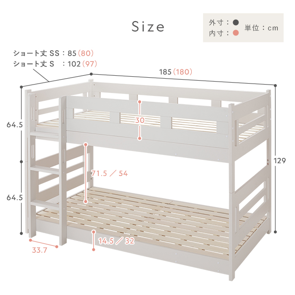 【商品名】 2段 ベッド ショート丈シングル 国産薄型ポケットコイルマットレス付き ホワイト 連結&分割可 ベッドフレーム 組立品 【ジャンル・特徴】 2段ベッド ベット ベットフレーム すのこベット スノコベッド 寝具 インテリア家具 寝室家具 ベッドルーム 寝室 子供部屋 子ども部屋 こども部屋 引っ越し 引越し 引越 プレゼント お祝い 進学祝い 進級祝い 兄弟 姉妹 べっど べっと 分割可能 通気性 耐久性 丈夫 頑丈