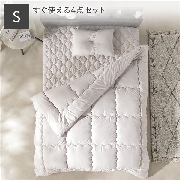 シングル(4点セット):掛け布団×1 + 枕×1 + ボックスシーツ×1 + 収納ケース×1