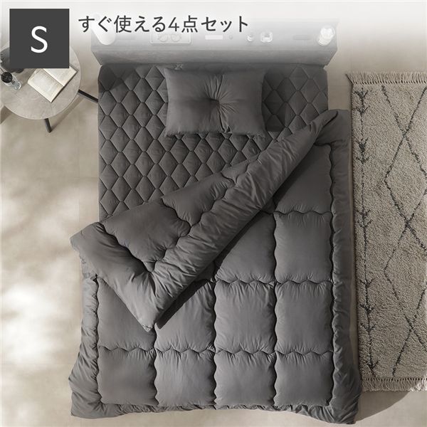 ■すぐに使える布団4点セット(掛け布団×1+枕×1+ボックスシーツ×1+収納ケース×1) シングル チャコールグレー[当ページ]