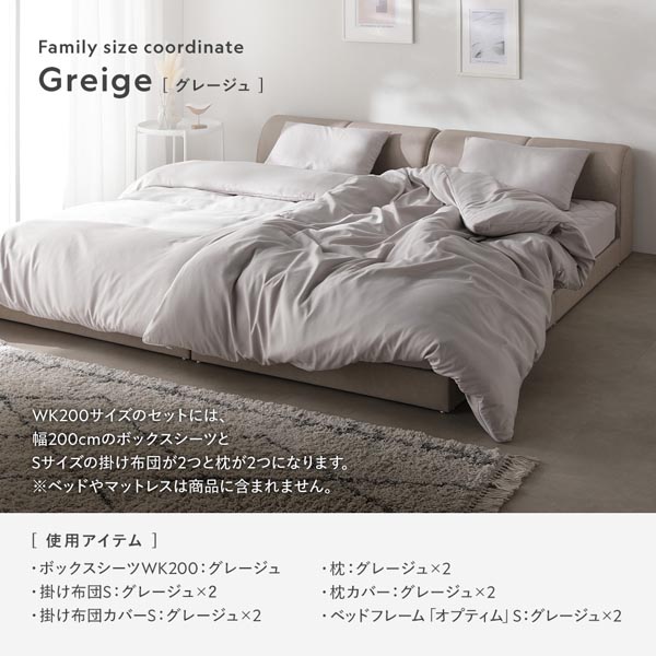 ■全部入りフル10点セット(掛け布団×2+枕×2+ボックスシーツ×1+収納ケース×1+掛け布団カバー×2+枕カバー×2) ワイドキング200 グレージュ