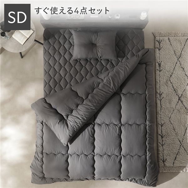 ■すぐに使える布団4点セット(掛け布団×1+枕×1+ボックスシーツ×1+収納ケース×1) セミダブル チャコールグレー[当ページ]