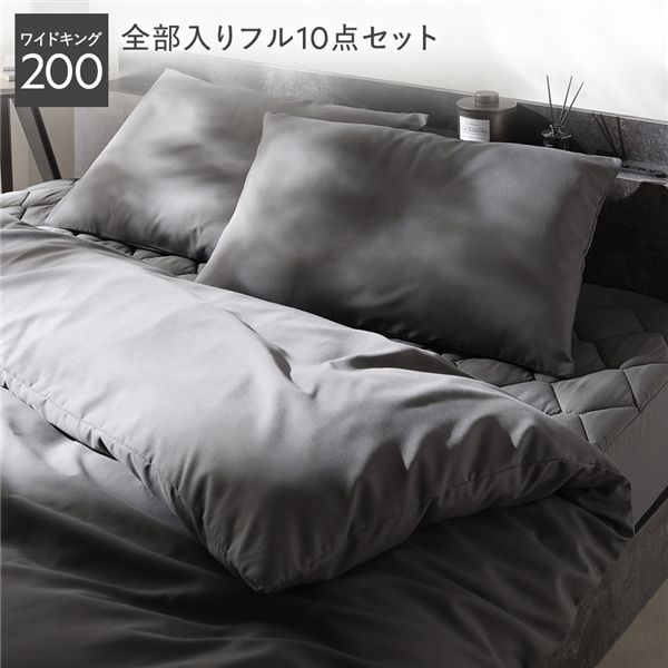 ■全部入りフル10点セット(掛け布団×2+枕×2+ボックスシーツ×1+収納ケース×1+掛け布団カバー×2+枕カバー×2) ワイドキング200 チャコールグレー[当ページ]