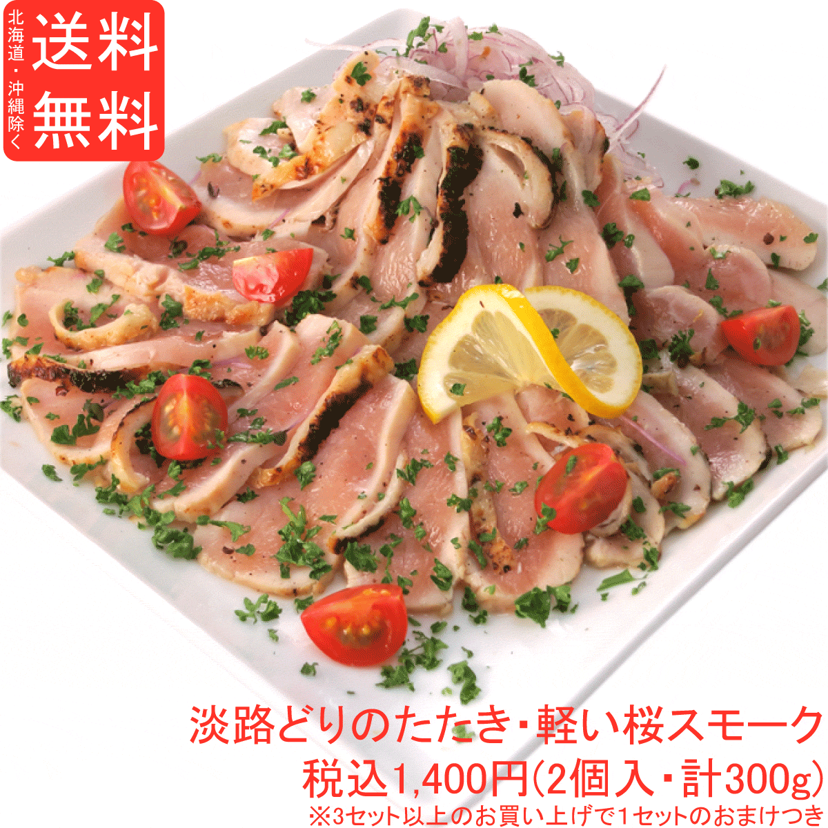 【送料無料※北海道・沖縄除く】淡路どりのたたき軽い桜スモーク(2個入・合計300g)【3セットご購入で1セットおまけ付き 】