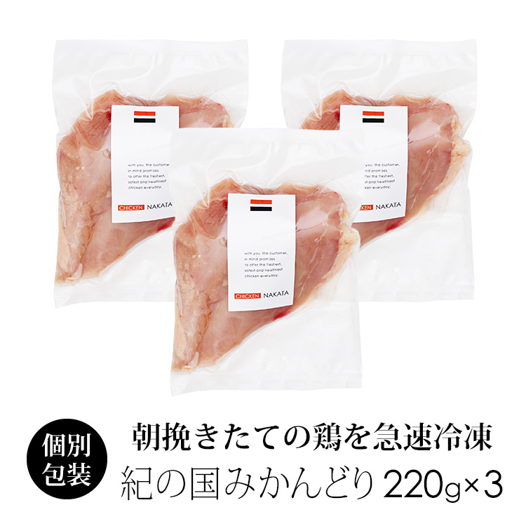 鶏肉 国産 紀の国みかんどり むね肉 220〜250g×3枚 (冷凍) ムネ肉