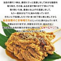 当店の豚モツ串は、最初にさっと湯通しをして余分な脂肪を取り除き、その後、ぬるま湯で隅々まで丁寧にアクを取り除いた後、最後に仕上げの湯通しをして、もう一度余分なアクと臭みを取ってきれいに下処理したモツを、1本1本丁寧に串に刺してから当店自慢の焼きとんたれにじっくりと漬け込んで仕込んでいます。非常に手間はかかりますが、手間をかけた分、臭みのない脂の旨味とお肉の弾力が存分に味わえる”じゅーし〜♪”な豚モツ串に仕上がっています!