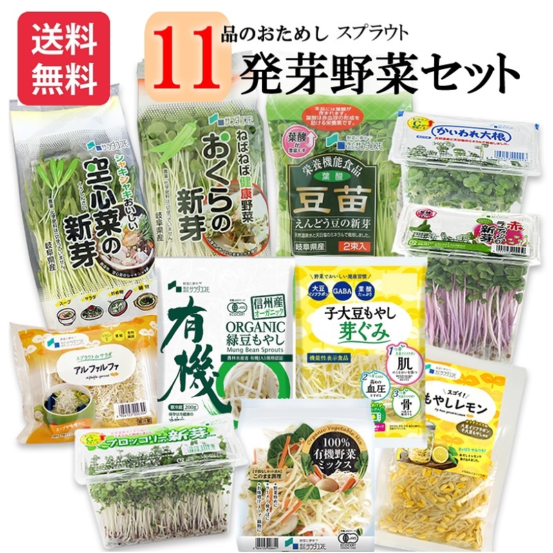 ![]() ![]() ![]() ![]() ![]() ![]() ![]() 11品の発芽野菜(スプラウト) 内訳 ![]() ![]() ![]() 11品の新鮮発芽野菜スプラウト(緑豆もやし、子大豆もやし、かいわれ大根、ブロッコリーの新芽、空心菜の新芽、おくらの新芽、豆苗、アルファルファ、赤ラディッシュの新芽、100%有機野菜ミックス)各1パックと、調理不要の常備菜「もやしレモン」1袋が入った、送料無料のお買い得セットです。 ※発芽野菜の種プレゼントも付いてます ●但し、北海道・沖縄は別途料金お願いしております。 ●通常はクール便での発送ですが、冬場は寒すぎて凍ってしまう事があるため常温便で発送することもあります。ご了承ください。 ※パッケージは予告なく変更になることがあります。 |