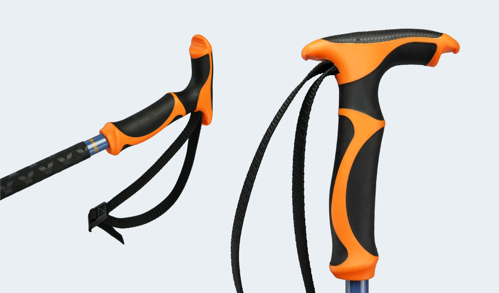 中指、薬指、小指の3本でしっかりと上から握ることで、荷重をかけやすく、ポールの操作性を失わないよう設計されています。