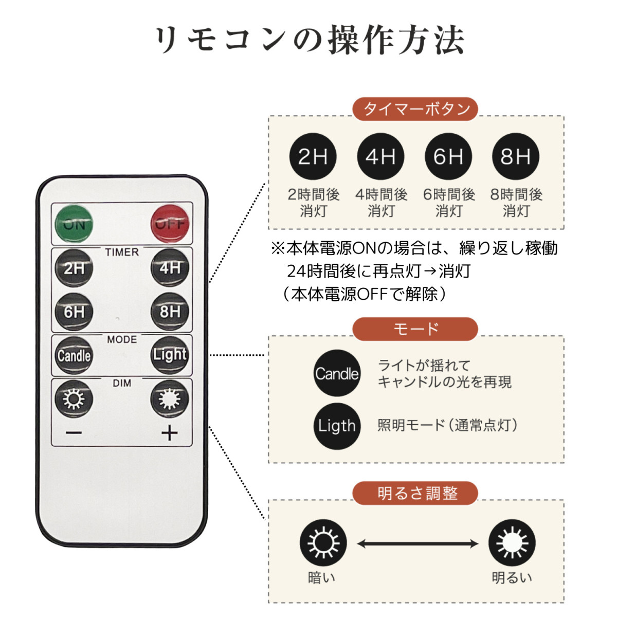 LEDロウソク 専用リモコン 電池式 ろうそく 蝋燭 リモコン led ローソク リモコン 葬祭 led蝋燭 電池式ろうそく 自動消灯 明るさ調整 仏壇用 LEDキャンドル