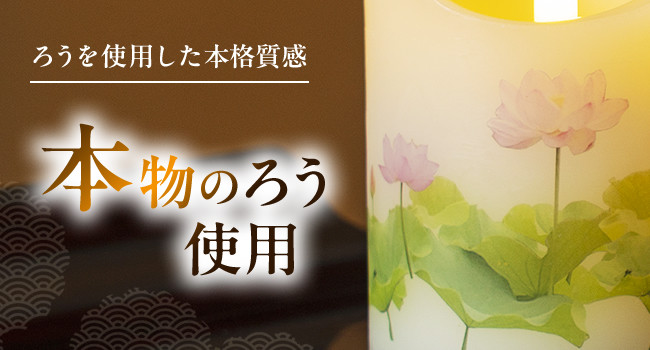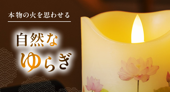 外装は本物のろう製で、見た目も手触りも本物のろうそくそのもの。優しい炎のゆらめきが、お参りの空間に温もりを加えます。
