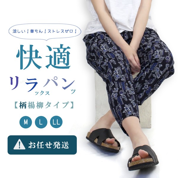 しじら織りリラパンよりもややサイズが大きめのデザインです。 (Mサイズはあまり変わりません)