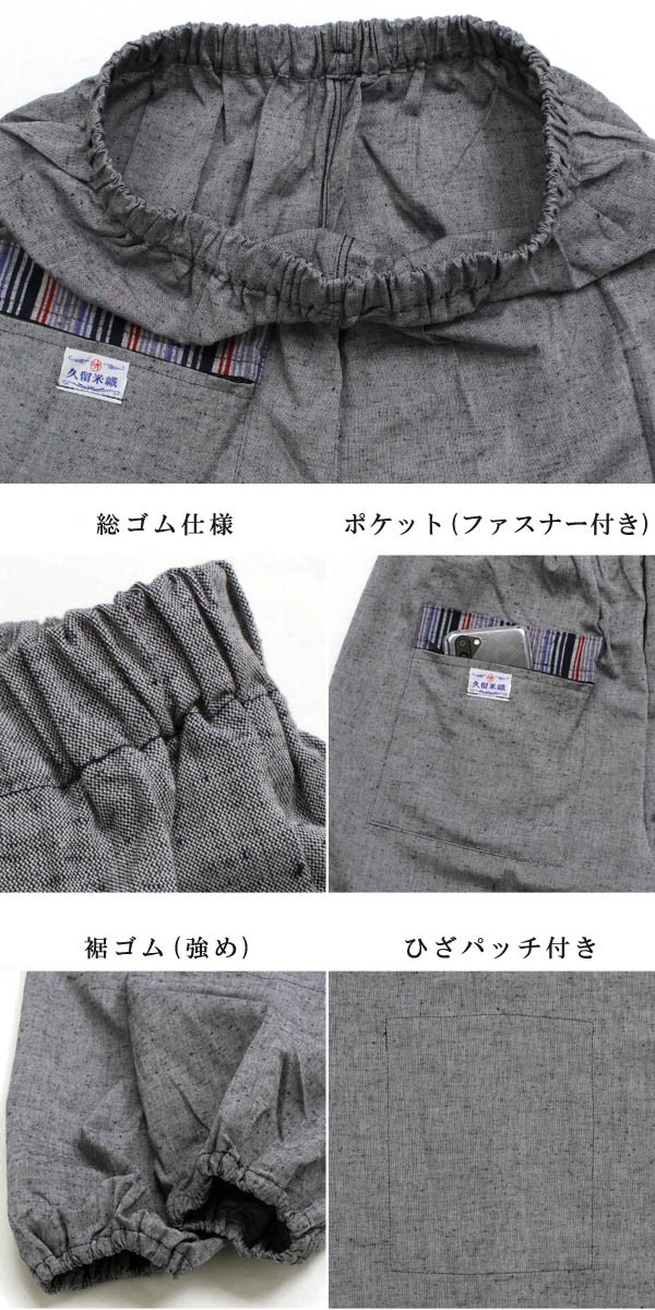 久留米織 無地 紬 素朴 日本製 かつお縞 ゆったり リラパン リラックス パンツ 夏 綿100% コットン サルエル ルームウエア 裾ゴム 部屋着 パジャマ お洒落 もんぺ 野良着 エスニック 涼しい イージーパンツ つむぎ くるめ MONPE 爆買