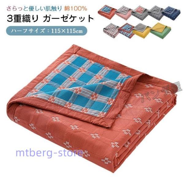 ガーゼケット 3重ガーゼ タオルケット 綿100% 子供 ベイビー 車中泊 ひざ掛け 正方形 快眠 寝具 ブランケット 柔らか 丸洗いOK 115×115cm