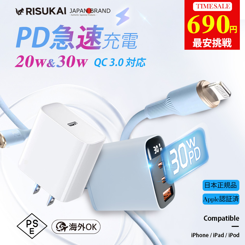 iPhone 充電ケーブル リスカイ ライトニングケーブル Type-C Lightning 充電器 USB 日本ブランド 純正 apple認証品 アップル ケーブル 急速充電 USB-C 1m 2m 純正品質 USB-A iPhone17 13 13mini pro max 12 12mini SE2 11 X XS XR 8 7 6 Plus iPad 断線防止 丈夫 タフ 細い