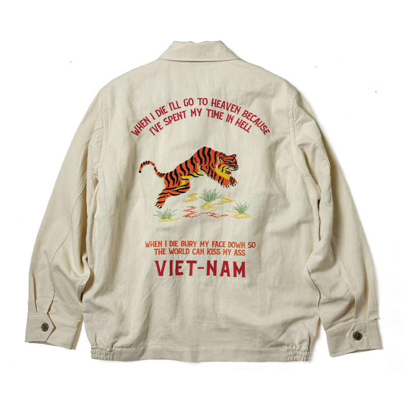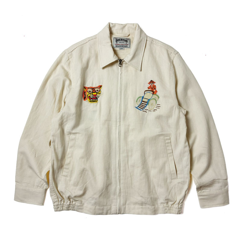 HOUSTON ヒューストン ベトジャン ベトナムジャケット 虎 トラ 刺繍 コットンリネン 綿麻 オフホワイト 生成り