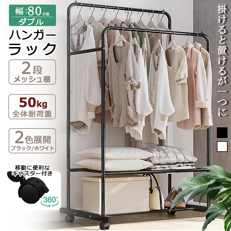 ハンガーラック おしゃれ キャスター付き 可動棚 ダブル ハンガーラック 頑丈 衣類収納 室内物干しスタンド 洋服ラック スリム 黒 白 スチール製 スリム 爆買