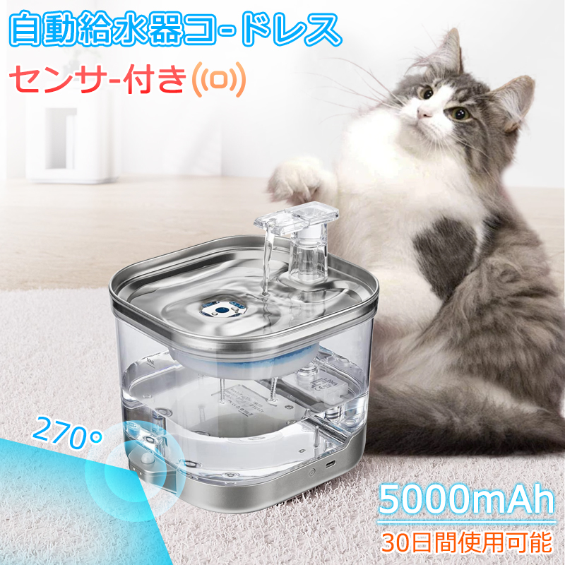 猫 給水器 コードレス センサー 水飲み器 ペット 自動給水器 猫 犬 ステンレス製 超静音 フィルタープレゼント 2L大容量 多頭飼いも対応 大容量 充電式 爆買
