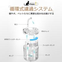 自動循環機能を搭載し、常に新鮮で美味しい水を提供します。低消費電力で、24時間連続稼働しても電気代はわずか19円未満と非常に省エネです。パッケージには給水器本体、ポンプ、充電ケーブル、日本語取扱説明書、フィルターが含まれています。
