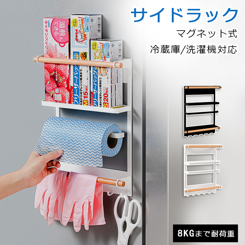 冷蔵庫などにマグネットでくっつけるだけで簡単に設置できる収納ラックです。