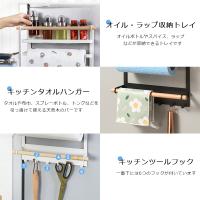 冷蔵庫側面に磁石で簡単に取りつけられ、キッチン小物を一括収納。