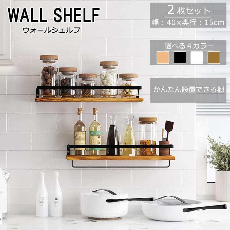 ウォールシェルフ 2枚セット 壁掛け棚 スパイスラック ウォールラック 木製 ガード付き壁掛けラック 小物置き 省スペース 飾り棚 木目調 飾り棚 神棚 爆買