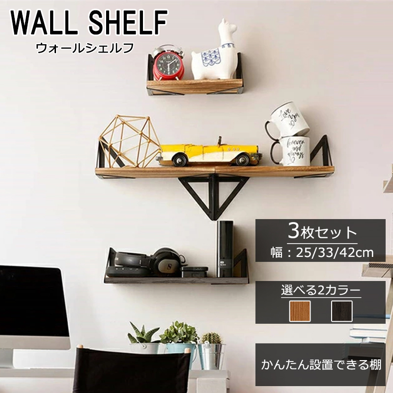 ウォールシェルフ 木製 3枚セット 壁掛け棚 ラック スパイスラック ウォールラック 木製 ガード付き 収納棚 トイレ壁棚 ラック 飾り棚 フック ペーパー置き 爆買
