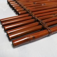 竹の素材感を生かした花台。赤黒く染めた竹製のフラワースタンド