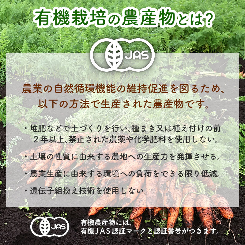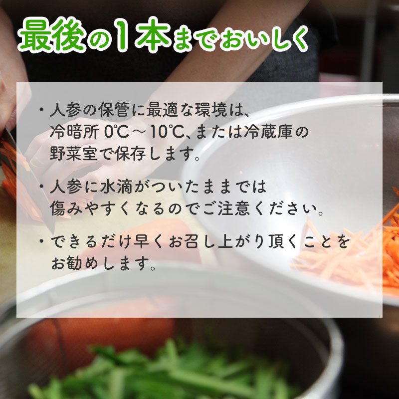 | 保存方法 | 冷暗所(0℃〜10℃)または冷蔵庫の野菜室で保存してください。 人参に水滴がついたままでは傷みやすくなるのでご注意ください。 到着後はできるだけ早めにお召し上がり下さい。 |