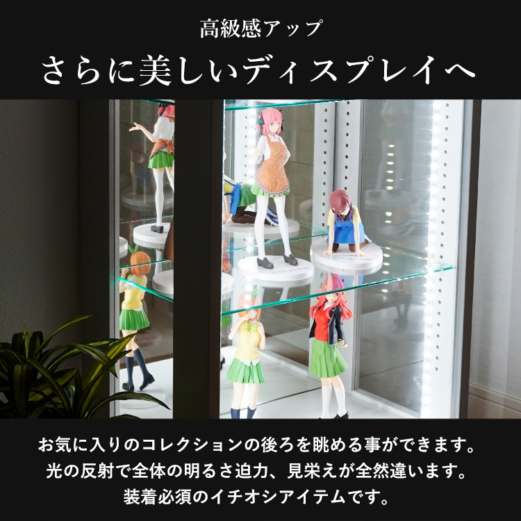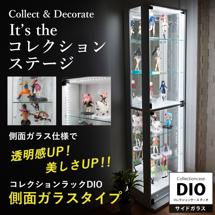 | サイズ | ・上部用:(約)幅41.6×高さ76.6m×厚さ0.3cm ・下部用:(約)幅41.6×高さ68.6m×厚さ0.3cm 計2枚(コレクションラックDIO 側面ガラスタイプ ハイタイプ本体1台分)となります。 |