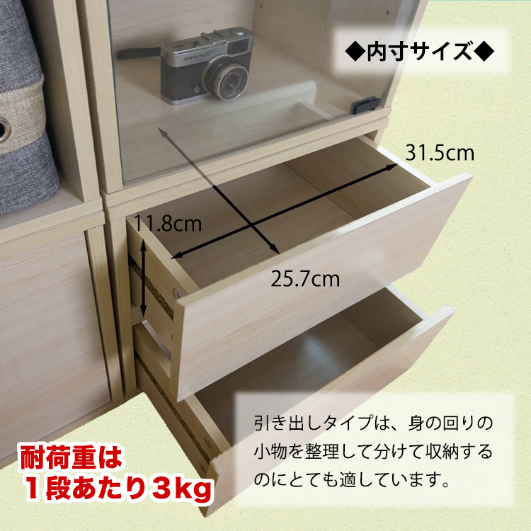 | 耐荷重 | 引き出し:3kg(1段あたり) |