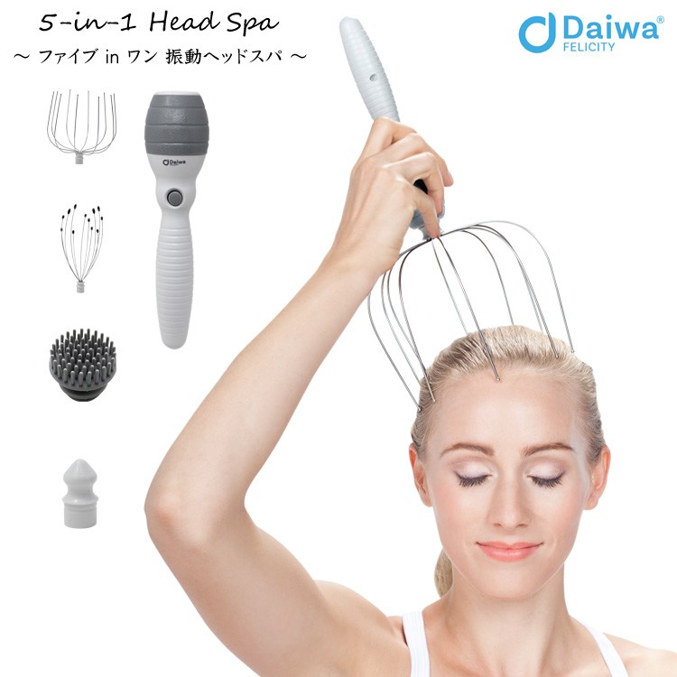 | ・仕事に、家事に、忙しい全ての方に贈る5つの機能が1つに入った頭皮マッサージブラシ 「ファイブ・イン・ワン 振動 ヘッドスパ」。ただのヘッドスパワイヤーではなく、モーターが搭載されたヘッドマッサージ本体と、4種類のアタッチメントがセットになった、とってもお得な商品です。 ・頭皮ブラシの先端に磁石が付いた「マグネティック・スカルプ」は、磁石・磁気セラピーとバイブレーションによる繊細な振動で、より効果的に頭皮の血行を促し、リラックスできます。薄毛が気になり始めた方は、毎日このヘッドマッサージャーで新陳代謝を活発にしましょう。 ・硬めのアームと、脚や腕などの部位にも利用出来る、幅が広い「ディープ・スカルプ」は「マグネティック・スカルプ」で満足できない方にお勧めです。 全身を駆け抜けるぞわぞわ感は病みつきなる事間違いなし! ・顔のむくみや、お肌のたるみ、美容液を塗った後に使える、柔らかいシリコン製の「フェイス・ブラシ」。小さくて持ち運びがカンタンなのでお風呂の後や洗顔後に、ソファーに座りながらフェイスマッサージとしてご利用になります。 ・ひどいコリに、ツボ押し用「指圧ポイント」を使えば、体のどの部位でも、痛い箇所にピンポイントで刺激を与え、血行促進を促しコリを解消します。頭皮マッサージ器としてだけではなく、ストレス解消グッズとして、お友達、同僚、家族へのプレゼントに是非ご利用下さい。 |