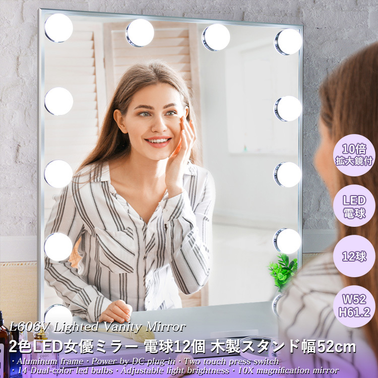 | ★スマートタッチセンサー機能、調整可能な明るさの照明。暖かい暖色と昼光色を自由に変えることができます。 ★メモリー機能付きで、ミラーに明るさの設定を記憶させます。 ★シームレスなアルミフレームにより、ミラーはより高級で美しくなります。 ★最高品質の素材で長持ちするように作られたゴージャスで優れたミラー。LED電球の寿命は50,000時間です。 ・アルミフレーム ・12VのDCプラグインによる電力 ・2つのタッチスイッチ ・12個のデュアルカラーLED電球 ・無段階の調光機能 |