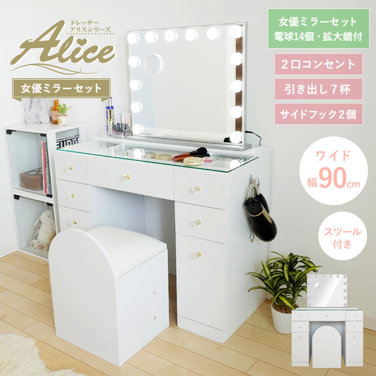 ![]() ドレッサー引出し7杯+ハイタイプ+女優ミラーLED14個セット | ![]() ドレッサー引出し7杯+ハイタイプ+女優ミラーLED12個セット |