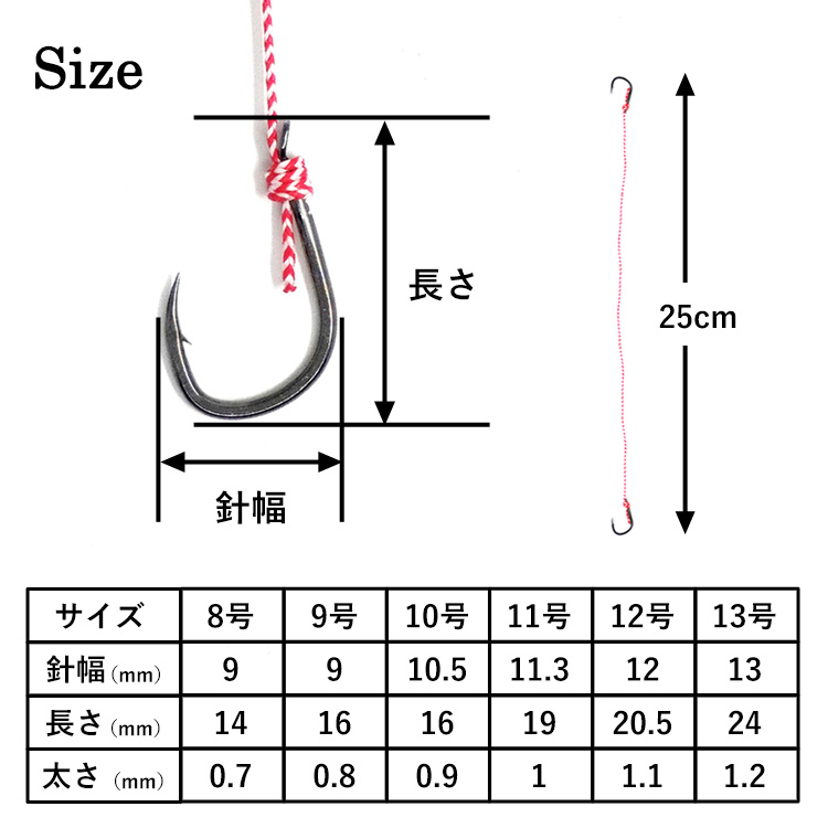 | サイズ | 8号 | 9号 | 10号 | 11号 | 12号 | 13号 |
