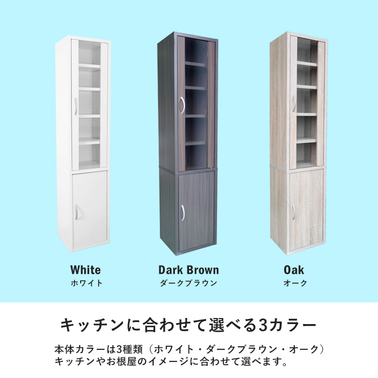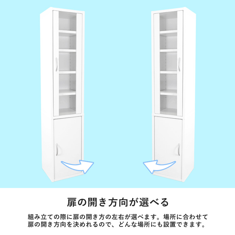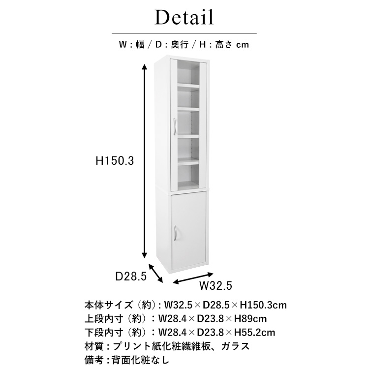 | ・一人暮らしのお部屋でも使いやすいスリム食器棚 ・幅32cm、奥行28cmのコンパクトサイズ ・食器のサイズに合わせて調整できる可動棚付き ・見せる収納ができる上段ガラス扉 ・下段扉にはストック等の隠したいものを収納 ・組み立て時に扉の開き方の左右が選べる |