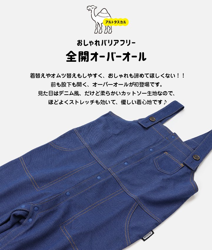 [RSL] アルトタスカル おしゃれバリアフリー オーバーオール 子供服 キッズ サロペット デニム風 前開き 全開き 医療ケア 140 150 160cm