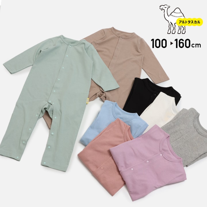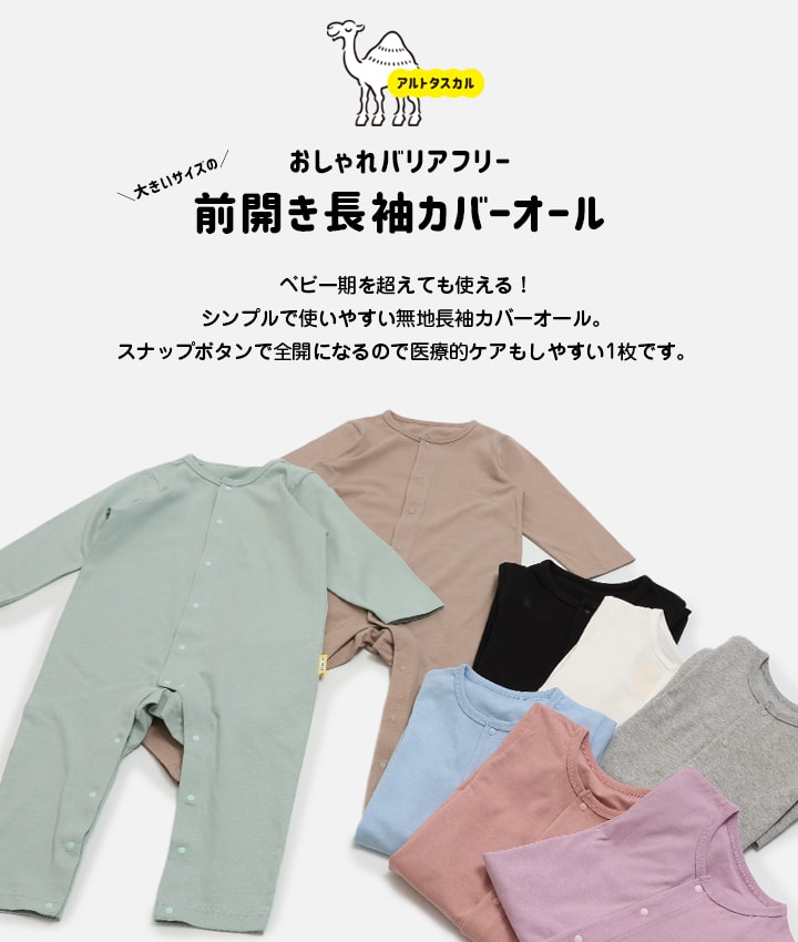 [RSL] アルトタスカル おしゃれバリアフリー 長袖 無地 カバーオール キッズ 子供服 ロンパース 前開き 全開き 男の子 女の子 100 110 120 130 140 150 160cm