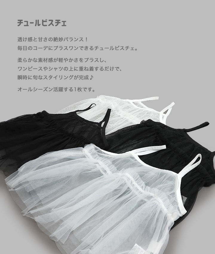毎日のコーデにプラスワンできるチュールビスチェ。