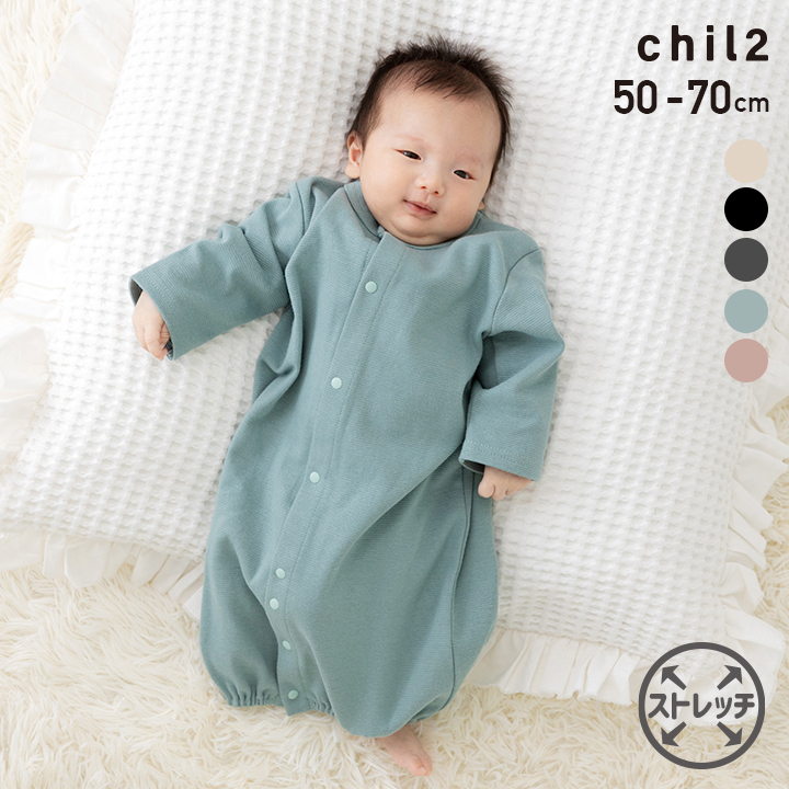 ネコポス送料無料 ツーウェイ ロンパース カバーオール ベビー服 子供服 長袖 新生児 ベビー服 赤ちゃん 男の子 女の子 ストレッチ 無地 秋 [M便 1/1]