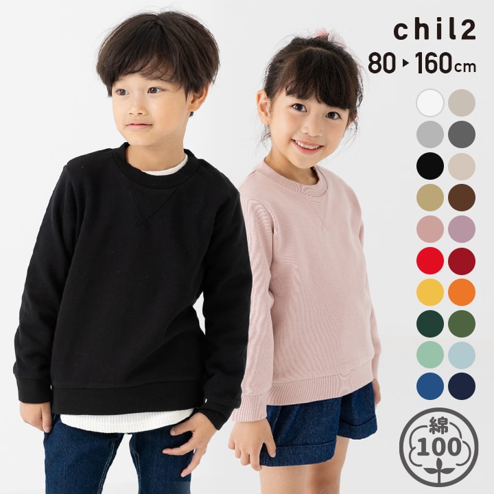 ゆうパケ送料無料 キッズ トレーナー 無地 男の子 女の子 子供服 ベビー 綿100% スウェット 裏毛 長そで 80 90 95 100 110 120 130 140 150 160cm [M便 1/1]