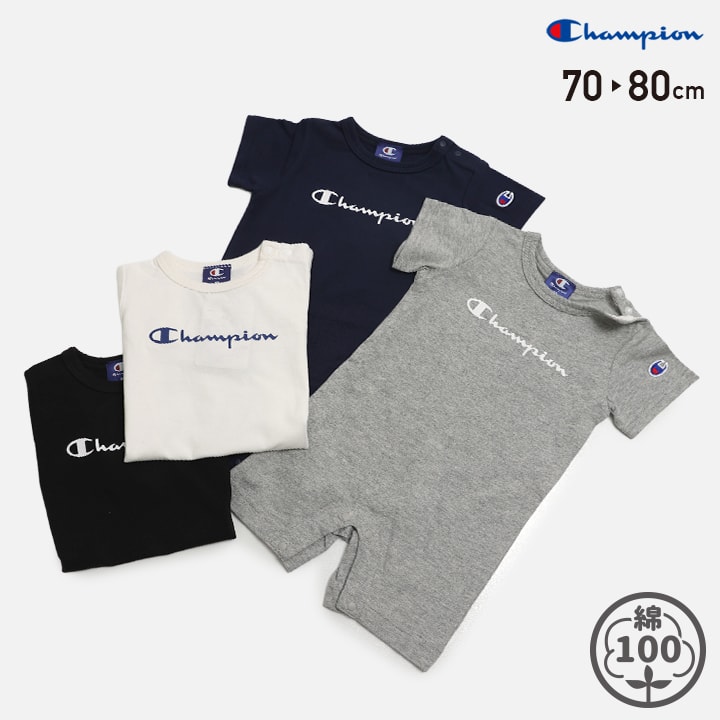 チャンピオン 半袖 カバーオール ロンパース ベビー服 子供服 男の子 女の子 天竺 綿100% ロゴ シンプル ワッペン champion 夏 [M便 1/2]