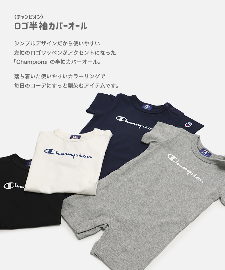 チャンピオンのシンプルなロゴが胸元で映える半袖カバーオール!