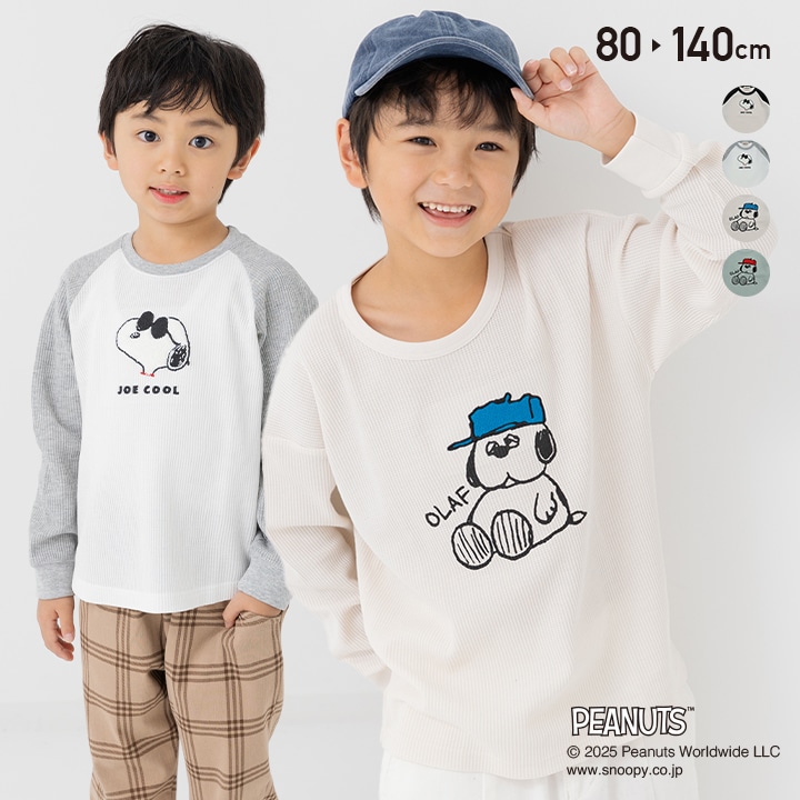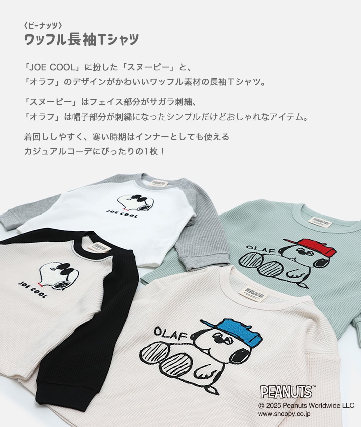 在庫処分 スヌーピー キッズ 長袖 Tシャツ ロンT 男の子 女の子 ワッフル ベビー服 子供服 刺繍 ピーナッツ PEANUTS オラフ 80 90 100 110 120 130 140cm