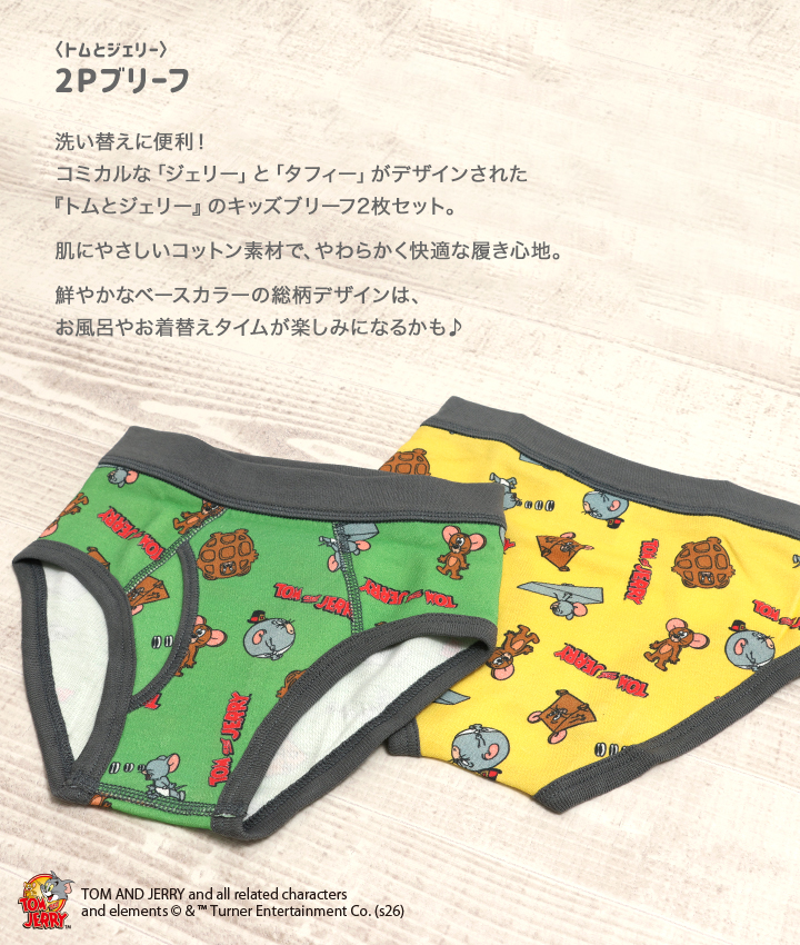 「ジェリー」と「タフィー」がデザインされたキュートな『トムとジェリー』キッズブリーフ2枚セットが登場!