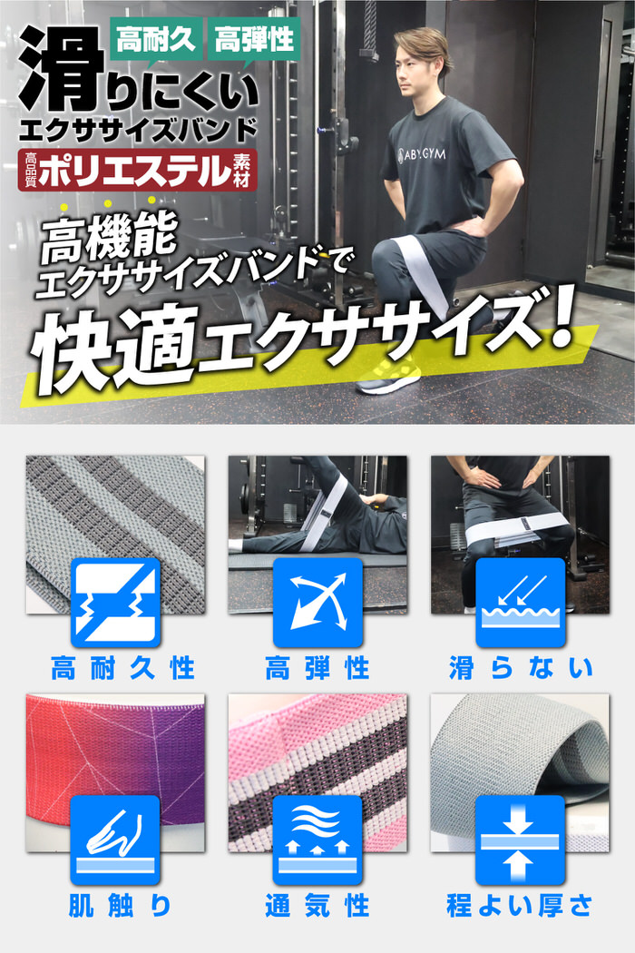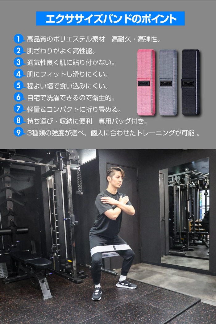 ゴムの張力を使って、どこでも本格的な筋トレが行えます。