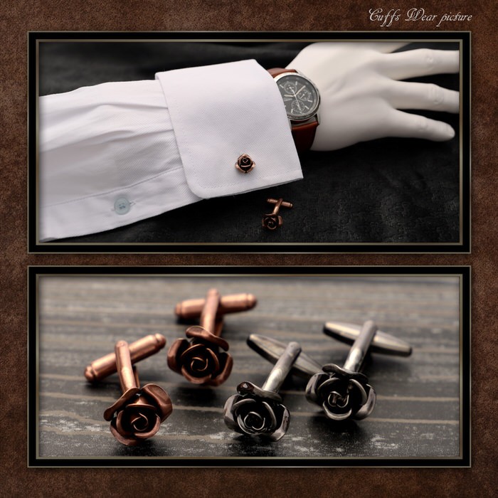 バラ ローズ 薔薇 植物 モチーフ カフス カフスリンクス カフスボタン メンズ 紳士用 結婚式 スーツ 使い方 プレゼント お祝い 父親 職場
