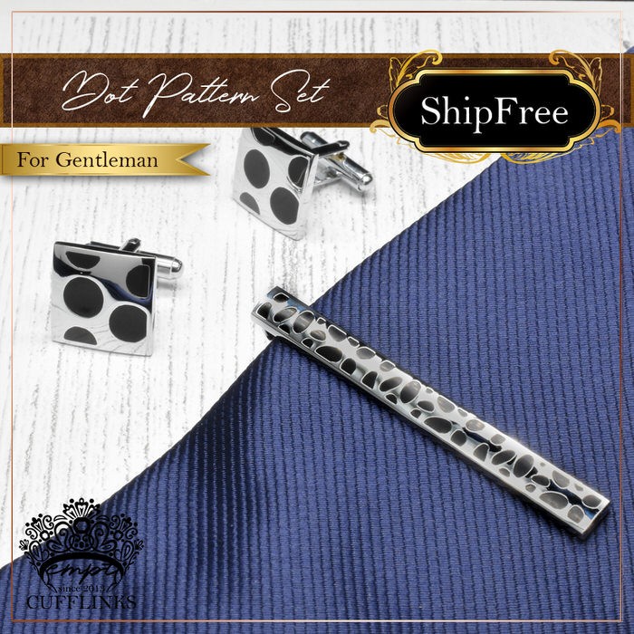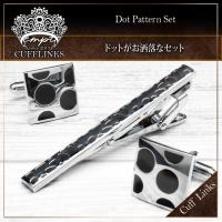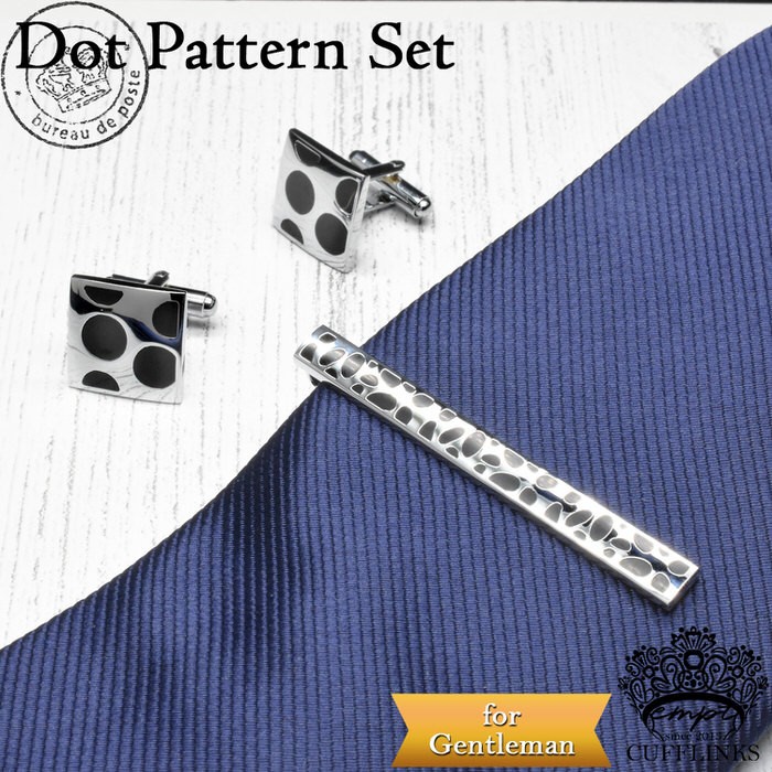 ■ 商品名 : カフス タイピン セット 銀黒 ドット 模様