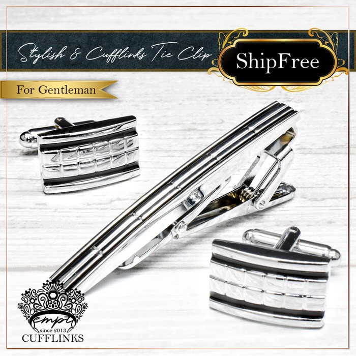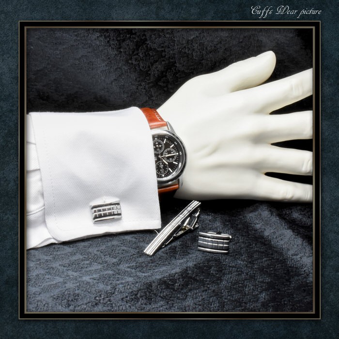 ■ 商品名 : カフス タイピン セット 銀黒 模様
