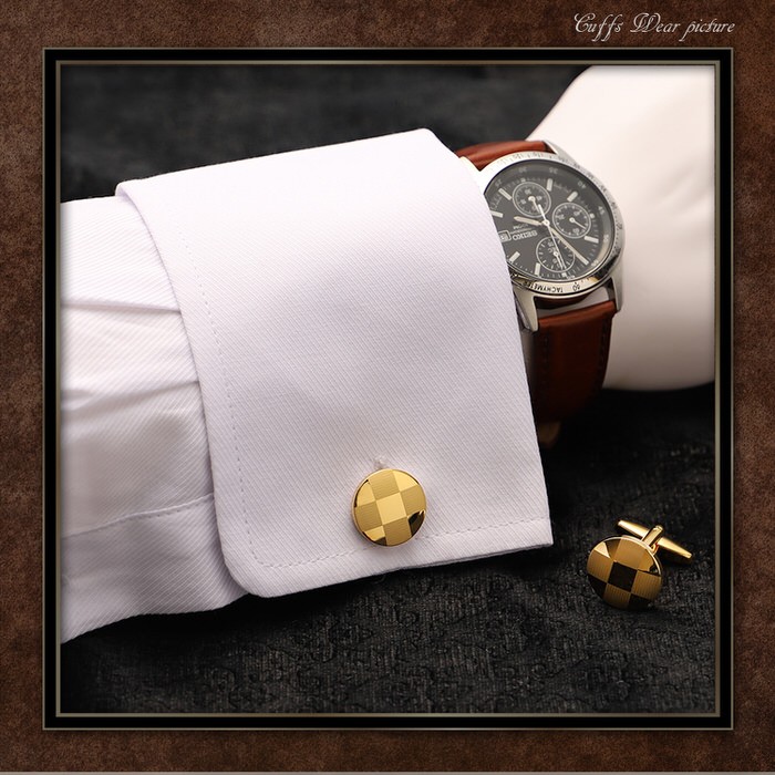 ■ 商品名 : カフス サークル ブロックチェック ゴールド